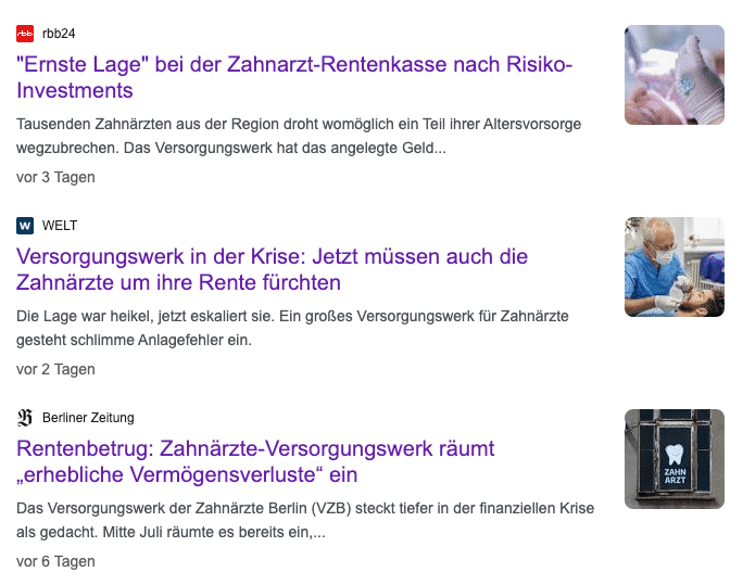 Versorgungswerke legen im Gegensatz zur gesetzlichen Rente die Beiträge der Mitglieder ertragbringend an, wenn auch eher defensiv. Die Grundidee ist nicht verkehrt. Doch wie genau Ihr Geld investiert wird und welche Risiken dahinterstecken, ist meistens gar nicht bekannt. Im Falle des Versorgungswerks der Zahnärzte Berlin ist bspw. von spekulativen Investments die Rede, die nun zu Vermögensverlusten führen können.