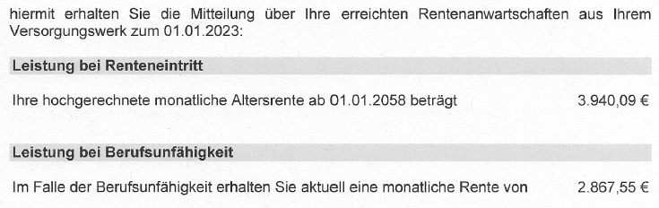 | Profitabilität | ø gering, da defensiver Anlagemix. Zudem abhängig von der Anlagestrategie des Versorgungswerks. | ø hoch, da hoher Aktienanteil vereinbar ✅ |