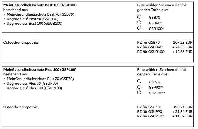 Versicherer können bestimmte Leistungen (z. B. Rücken- und Wirbelsäulenbehandlungen) ausschließen. Der Versicherer lehnt nicht ab, sondern schließt ein Risiko aus, dafür verlangt er in der Regel zusätzlich einen Risikozuschlag.