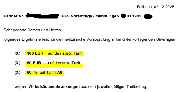 - Ein Bandscheibenvorfall ist kein genereller Ausschlussgrund für die PKV.