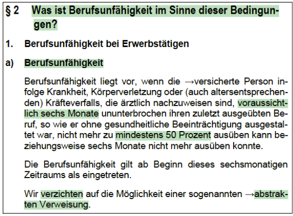 Wie regelt das ein privater BU-Versicherer in den Versicherungsbedingungen? Im Folgenden ein Beispiel: