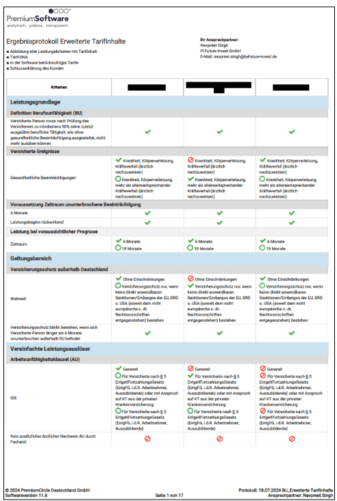 Die Unterschiede zwischen den Anbietern sind teils erheblich. Deshalb erstellen wir für unsere Mandanten einen unabhängigen, transparenten und objektiven Tarifvergleich, basierend auf den vertraglichen Bedingungen.