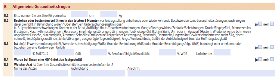 Die Gesundheitsfragen der DANV-BU sind im Vergleich zu vielen anderen Anbietern marktüblich, wenn auch andere Anbieter bessere Formulierungen haben. In diesem Beitrag können Sie sich diese genauer anschauen.