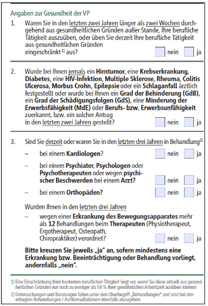 Das sind die 3, klar formulierten Gesundheitsfragen für beispielsweise Rechtsanwälte/Rechtsreferendare: