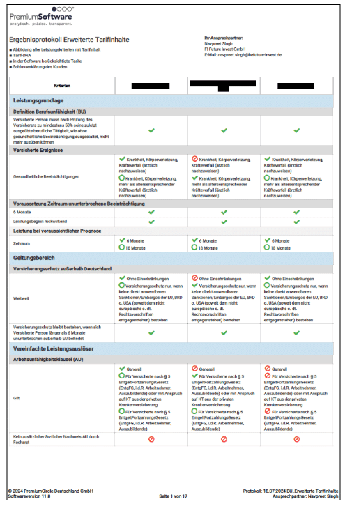 Um als Rechtsanwalt in Berlin den passenden Berufsunfähigkeits-Tarif zu finden, brauchen Sie einen Tarif-Vergleich anhand der Versicherungsbedingungen. Anhand des Kleingedruckten in den Versicherungsbedingungen wissen Sie erst, welchen Leistungsumfang der jeweilige Tarif hat.