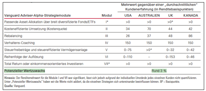 Vanguard, der zweitgrößte Vermögensverwalter der Welt mit über 8 Billionen Dollar verwalteten Vermögen, hat hierzu eine umfangreiche Studie veröffentlicht. Laut der Studie kann ein professioneller Berater seinen Anlegern einen Rendite-Mehrwert von rund 3% bieten! Neben wichtigen Aspekten wie einer niedrigen und effizienten Kostenbelastung oder einer steuereffizienten Ausrichtung liegt der Hauptvorteil eines guten Beraters bei der Fehlervermeidung – er schützt sie vor emotionale Einflüsse, die ihre Rendite schmälern: