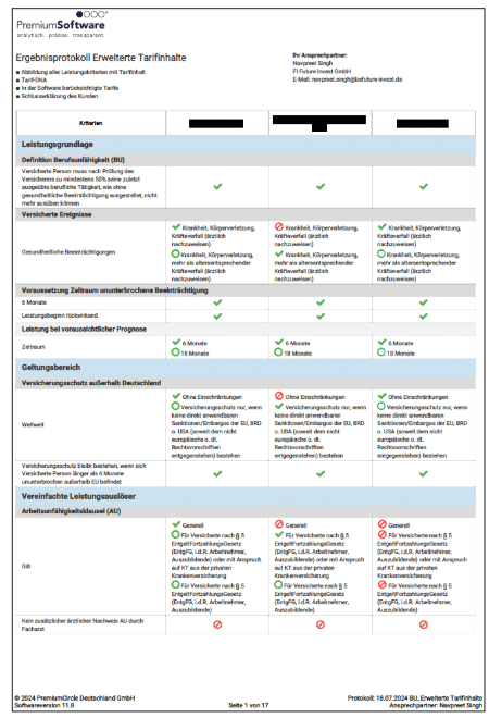 Die Unterschiede zwischen den Anbietern sind teils erheblich. Deshalb erstellen wir für unsere Mandanten einen unabhängigen und fundierten Tarifvergleich, basierend ausschließlich auf den vertraglichen Regelungen – transparent und frei von Vertriebs- oder Werbeaussagen.